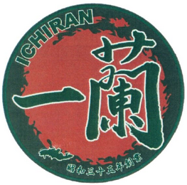 - DM0000: The mark consists of a red and black circle outlined in the color green. The wording "ICHIRAN" appears in green with white outlining along the top left portion of the circle. In the center of the circle are green Chinese characters outlined in white with smaller green Chinese characters outlined in white also appear on the bottom curve of the circle.