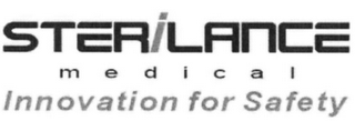 DM0000: The mark consists of stylized block letters "STER" and "LANCE" separated with a slightly angled letter "i" in the first row, standard characters "medical" in the second row and angled words "Innovation for Safety" in the last row.