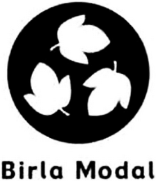- DM0000: The mark consists of a shaded circle with three leaves placed in the circle above the words "Birla Modal" in stylized font.