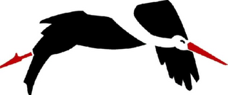 - DM0000: The mark consists of a flying stork with a white body, black wings and red beak and feet.