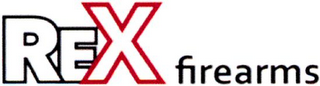 - DM0000: The mark consists of the wording "REX" in white with letters "R " and "E" outlined in black, and the letter "x" outlined in red, and the wording "FIREARMS" in black.