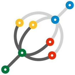 - DM0000: The mark consists of the stylized design of a sphere with a diagonal bar emanating from the top right and bottom left of the sphere. The sphere and bar appear in gray in the bottom half and light gray at the top half. Eight smaller circles appear throughout the sphere and bar design, each in white at the center and two in green, two in yellow, two in red, and two in blue. The color white also appears in the background of the mark.