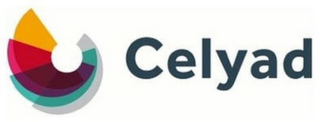 - DM0000: The mark consists of the wording "CELYAD" in a dark gray stylized font, to the right of four translucent semi-circles, overlapping in a spiral. The bottom semi-circle is light gray, on top of that is a light and dark turquoise semi-circle, on top of that is a pink and light and dark purple semi-circle, and on top of that is an orange, red, and light and dark maroon semi-circle. An incomplete white circle is on top of the spiral, placed right of center along the diameters of the semi-circles. The mark appears on a white background.