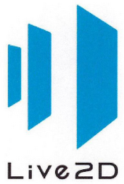 - CD0000: The mark consists of three blue sideways trapezoidal figures lined up smallest to largest, left to right, with the word "Live2D" in black below them.