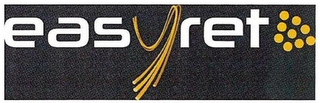 - DM0000: The mark consists of the stylized wording "EASYRET" with the letters "E" "A" "S" "R" "E" "T" in white; the stylized letter "Y" consists of four yellow tubes. The wording "EASYRET" is followed by an assembly of 9 circles in yellow. The wording and design appear on a black rectangle background.