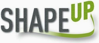 - DM0000: The mark consists of a design featuring the wording "SHAPE UP". The word "SHAPE" is textured in black and gray. The word "UP" is textured in green and white and slants upwards to the right beginning from the middle bar of the letter "E". A curved line begins, in white, at the letter "H" and transitions to green under the letter "P" in "SHAPE" and terminates in green under the letter "P" in "UP".