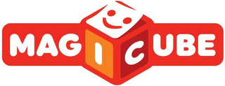- DM0000: The mark consists of the wording "MAGICUBE" in white and a three dimensional red cube with a red banner or curved rectangle extended on either side; the letters "MAG" are on the left side of the cube, and the letters "UBE" on the right side; the letter "I" is within an orange square on the left side of the cube, and the letter "C" is within a burgundy square on the right side; a white squared smiley face is on the top of the cube curving upward with the eyes and mouth in red, and a shadow beneath the white face in burgundy.