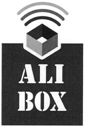 - DM0000: The mark consists of the stylized wording "ALI" and "BOX" stacked vertically, and inside of an incomplete rectangular shape. The top portion of the rectangular shape features negative space in the shape of an irregular triangle, and directly above this negative space is a three dimensional design of an open box. Above the open box is a design of soundwaves represented by three curved bands.