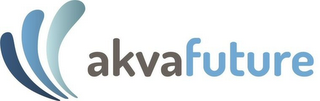 - DM0000: The mark consists of three curved lines forming a wave, the first line is dark blue, the second line is medium blue, and the third line is light blue. The word "akvafuture" appears to the right of the three curved lines with "akva" in grey and "future" in medium blue.