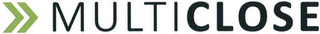- DM0000: The mark consists of the word "MULTICLOSE" in black with two green right facing chevrons to the left of the text.