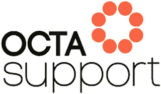 - DM0000: The mark consists of the wording "OCTA" above "SUPPORT" and a circle formed by eight circles to the right of "OCTA". The wording is black and the circles are orange.