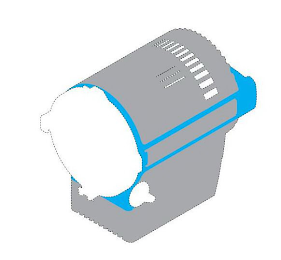 - DM0000: The mark consists of the combination of two colors applied to the surface of lighting goods. Specifically, the color silver (RAL: 9006) is applied to approximately 75% of the top, bottom, sides, and front and rear panels of the lighting goods, with the color blue (RAL: 5015) applied to the top, bottom, sides, and front and rear panels of the lighting goods at a ratio of approximately 25%. The matter shown in broken lines serves to show positioning of the mark and is not part of the mark.