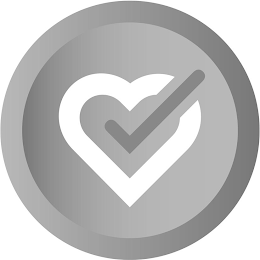 - DM0000: The mark consists of a stylized check mark inside a heart within a shaded circle featuring a shaded outline.