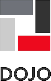 - DM0000: The mark consists of the word "DOJO", shown in black, below four rectangles forming the outer perimeter of a square, shown in the following colors from top left and moving clockwise: gray, black, red and light gray.