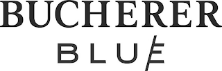 - DM0000: The mark consists of the stylized wording "BUCHERER" above the stylized wording "BLUE" with a diagonal line comprising the upright bar of the letter "E".