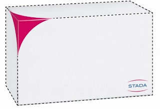 - DM0000: The mark consists of the color red applied to the left-hand upper corner of a rectangular package where each packaging panel contains a red triangle with a curved side which touch at the packaging corner, forming a larger three-dimensional red triangle. On the front of the package in the lower right-hand corner is the stylized blue wording "STADA" between two red arcs. The color white indicates background and is not claimed as a feature of the mark. The dotted lines outlining the packaging indicate placement of the mark on the packaging and are not part of the mark.