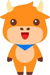 - DM0000: The mark consists of a stylized design of an anthropomorphism of an orange cow with brown hands and feet, brown shading on the stomach and face, a red mouth, a brown nose, brown and white eyes, and yellow horns. The cow is wearing a blue bandanna. The remainder of white in the drawing represents transparent background space that is not claimed as a feature of the mark.