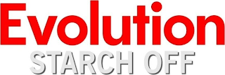 - DM0000: The mark consists of the stylized red word "EVOLUTION" and the stylized gray wording "STARCH OFF" with a black shadow effect.