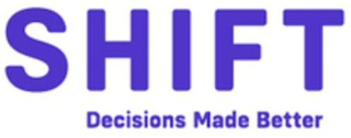 DM0000: The mark consists of the word "SHIFT" in stylized violet font above the wording "DECISIONS MADE BETTER" in smaller violet font.