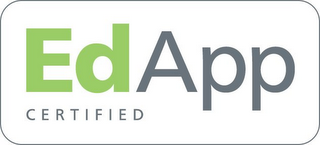 - DM0000: The mark consists of The words EdApp and certified with E and A of EdApp capitalized and the rest lower case The word certified in smaller capital letters beneath the word EdApp. The Ed of EdApp in green and the App in black.