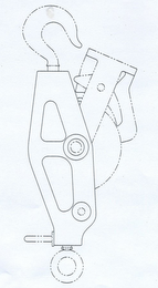 - DM0000: The mark consists of a three dimensional configuration of the goods, namely a hoist. The construction of the hoist is claimed, exactly as shown, including: an elongated polygon having a hook element extending from a top end thereof and a eyelet extending from a bottom end thereof; a first pair of concentric circles and a second pair of concentric circles located within the elongated polygon and arranged vertically spaced and horizontally offset from one another; a first closed-perimeter shape located within the elongated polygon adjacent the first pair of concentric circles, the first closed-perimeter shape generally tapering in width moving upward and away from the first pair of concentric circles, a second closed-perimeter shape located within the elongated polygon and extending from a position adjacent the first pair of concentric circles and the second pair of concentric circles, the second closed-perimeter shape generally tapering in width moving from the first pair of concentric circles to the second pair of concentric circles; a generally rectangular arm extending obliquely from a side of the elongated polygon; and an arc extending from a lower side of the generally rectangular arm to the side of the elongated polygon. Any matter shown in broken or dotted lines in not part of the mark and serves only to show position or placement of the mark.