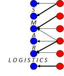 - DM0000: The mark consists of two columns of six circles each with arrows from the right column pointing to the left column and the letters "S M A R T" appearing vertically between each circle of the left column, with the letters "L O G I S T I C S" horizontally completing the word "logistics" between the fifth and sixth circles of the left column. The circles in the left column are blue, the circles in the right column are red, the arrows and lettering are black.