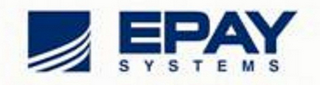 - DM0000: The mark consists of a dark blue square on the left with three curved white stripes reaching from the bottom left side of the square toward the upper right side of the square. To the right of the dark blue square appear the word "EPAY" in dark blue bold block lettering over the words "SYSTEMS" in smaller dark blue block lettering. The remainder of white in the drawing represents a transparent background that is not part of the mark.