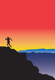 - DM0000: The mark consists of a sky over a black and blue mountainous landscape and a person depicted in black silhouette in a running pose adjacent to the foreground mountain wherein the background mountains are blue, the foreground mountain is in black silhouette and the sky is depicted in sunset colors that transition from red to orange to yellow as the sky meets the mountains.