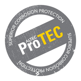 DM0000: The mark consists of a grey circle with white appearing to randomly streak through it around a solid white center on a solid white background, with the words "SUPERIOR CORROSION PROTECTION" in white letters inside the gray circle both at the top of the circle and upside down at the bottom of the circle which is rotated slightly to the left, with a gray bar across the center of the solid white center of the circle connecting both sides of the grey circle with the word "ALTEC" in smaller, white, capital letters above the larger lower-case letters "ro" of "Pro" which is also in white on the grey crossbar followed by the larger capital letters "TEC" in gold on the grey crossbar.