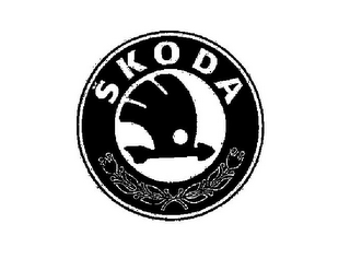 - DM0000: The mark consists of the wording "SKODA", with an accent mark over the letter "S", within a circular border containing a leaf design. The stylized representation of a winged arrow appears in the center.