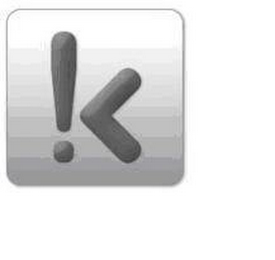 - DM0000: The mark consists of a stylized K composed of an exclamation point and an inequality sign opening to the right in block lettering. The stylized K is placed inside a rounded-edge square which is filled in with a fade pattern, fading from light at the top of the square to dark at the bottom of the square.