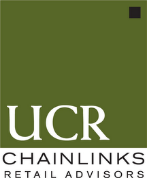 DM0000: The mark consists of a square olive green box containing the text "UCR" in white, a black tiny square in the upper right hand corner. Below the box appears the text, in black,"CHAINLINKS," and below that text appears, in black, the text "RETAIL ADVISORS".