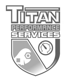 DM0000: The mark consists of the terms "TITAN PERFORMANCE SERVICES" stacked on top of each other above a bifurcated shield with an image of a wrench and gauge within.
