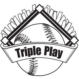 - DM0000: The mark consists of the words "Triple Play" in a banner in combination with a design that includes a baseball, a baseball field, and turf extending out of the top of the design.