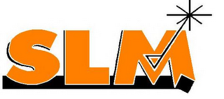 - DM0000: The mark consists of the lettering "SLM" in the color orange outlined in black and white with a black band underlining the wording and an asterisk star design in the color black with a black line with an inverted triangle at the end, outlined in white, extending from the star design into the letter "M".