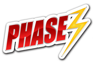 - DM0000: The mark consists of the word "PHASE" in red with a sine wave extending through all of the letters of the word, and a larger stylized number "3" in the form of a yellow lightning bolt at the end of and descending below the word "PHASE". The wording "PHASE3" is outlined in white. The color gray represents shading only and is not part of the mark.