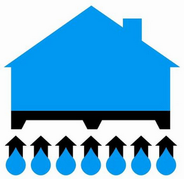 - DM0000: The mark consists of a house shown in blue with a foundation shown in black, with black arrows and blue water droplets appearing below the house.