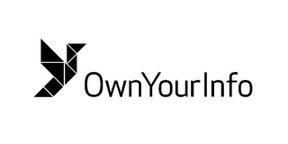 - DM0000: The mark consists of an arrangement of geometric shapes derived from the tangram puzzle, and together the shapes form the image of a bird in flight. To the right there is the stylized text "OwnYourInfo".