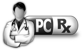 - DM0000: The mark consists of the image of a faceless male doctor image waist up with arms crossed and wearing a shirt, tie, and stethoscope. To the right of the image appears the letters "PC" and "RX" with the "X" attached to the "R" and slightly lower appearing within the design of a pill.