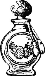 - DM0000: The mark consists of a perfume bottle drawn in a pen and ink style. The bottle is a circular shape with a base and a small mouth with crystal style spherical cap. The mouth of the bottle is wrapped with tassels that hang to the right. The front of the bottle has a circular floral design.