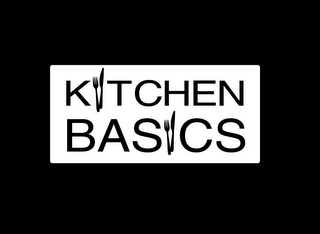 - DM0000: The mark consists of a rectangle design with the stylized wording "KITCHEN BASICS" inside the rectangle and with a fork and knife design representing the "I" in "KITCHEN" and "BASICS". The outer rectangle is intended to delineate the limit of the mark, and is not claimed as a feature of the mark.