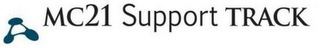 - DM0000: The mark consists of the black wording "MC21 SUPPORT TRACK". To the left of "MC21", and slightly below it, is a blue triangular design consisting of three large dots connected by three lines.