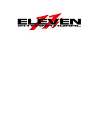 - DM0000: The mark consists of the words "ELEVEN" above "INTERNATIONAL" in black, the foreground with the characters "11i" in red in the background.