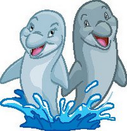 - DM0000: The mark consists of two gray smiling dolphins with white iris and black eyeballs with red tongues with lower part of dolphins in dark blue water with lighter blue water with white highlights splashing above the blue splashing water.