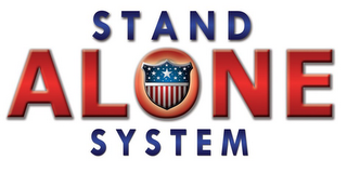 - DM0000: The mark consists of the words "STAND" at the top, "ALONE" in the middle, and "SYSTEM" at the bottom. "STAND" and "SYSTEM" are in blue and the word "ALONE" is in red. There is a red, white, and blue shield containing stars and stripes in the "O" of the word "ALONE".