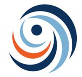 - DM0000: The mark consists of a swirl design formed by light blue, dark blue, and orange curved bands surrounding a dark blue circle.