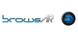 - DM0000: The mark consists of the entire text is "browsAR" the word brows is blue and in lower case letters and AR is in a stylized white and gray font letters have very thin black border. browsAR represents a browser for Augmented Reality. After the writing is a Black circle with a lower case black "b" inside of it with blue fill color as part of the "browsAR" logo.