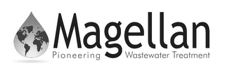 DM0000: The mark consists of a design of globe in the shape of a teardrop to the left of the word "MAGELLAN" with the words "PIONEERING WASTEWATER TREATMENT" below the word "MAGELLAN".