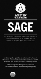 ART IN THE AGE SAGE CERTIFIED ORGANIC NEUTRAL SPIRITS DISTILLED WITH NORTH AMERICAN GARDEN HERBS AND BOTANICALS. A VIBRANT GARDEN SPIRIT BASED ON BERNARD MCMAHON'S "AMERICAN GARDENER'S CALENDAR" FIRST PUBLISHED IN 1806. MCMAHON WAS THOMAS JEFFERSON'S GARDENING MENTOR. A DELICIOUS PART OF THE ORGANIC EXPERIENCE IS OCCASIONAL SEDIMENT. SHAKE WELL BEFORE ENJOYING. USDA ORGANIC