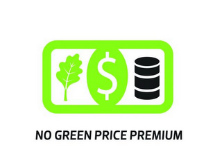 - DM0000: The mark consists of a stylized design of a rectangular frame in green with white in the center encompassing a green leaf on the left with a white vein running vertically, an elliptical green structure with a dollar sign in white in the middle and an oil barrel in black on the right with three white curved horizontal lines, all of which above the black wording "NO GREEN PRICE PREMIUM".